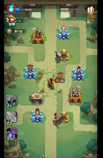 首先,⑤路会出现法师类怪物、白头盔骑兵和步兵,待怒气满30后,释放“雷霆万钧”技能击杀,随后会出现“大鸟”,由于血量过高,可能会漏杀几只。接下来②③④路口都会出现物理免疫法师(特殊技能:为周围敌军增加物理免疫护盾,令我方弓手攻击无伤害),随后,这三路路口会继续出现步兵、法师类怪物、召唤类法伤怪物和养蛇人,这些怪物主要靠鼓舞法师和“雷霆万钧”技能进行击杀,并在终点附近释放“冰雨”技能(再次提醒:建议漏怪数量较多时,点击右上角暂停键后重新开始)。最后,⑤路会出白头盔骑兵,由于怒气不足,可能会漏掉几个骑兵,顺利通关。