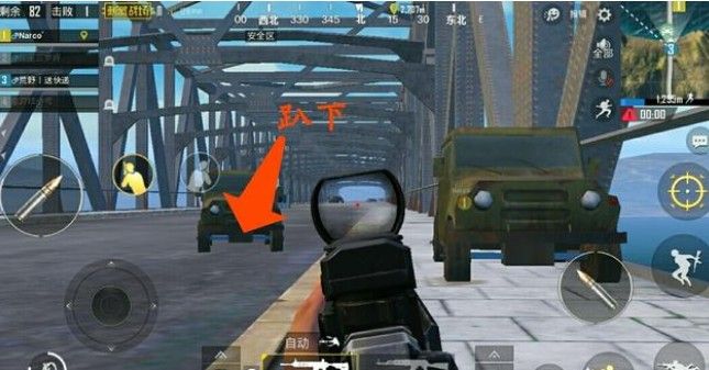 怎么趴下?吉普车的胎盘比较高,而刺激战场是完全模拟真实环境的游戏,所以当车已经来到你的面前并且无处可躲的时候,那么就只有这一个选择,趴到车的正中间位置,那么车直接就会从你的身体穿过,车轮没有碰到的话,就没有任何伤害。这是一个没有办法的办法,但是,成功率相当高,这是我们亲测的结果。千万不要跳起来躲车,那样会被撞飞!!!